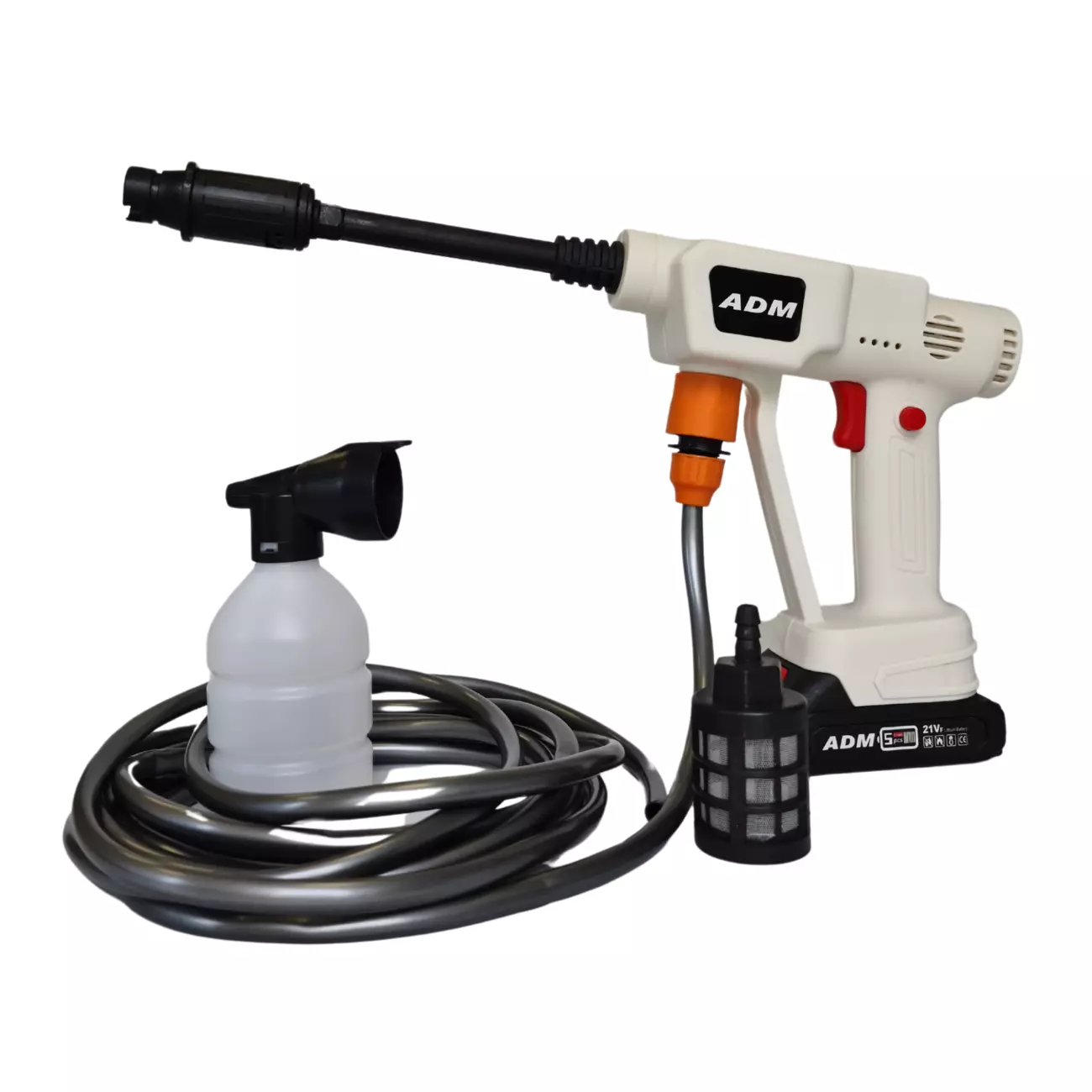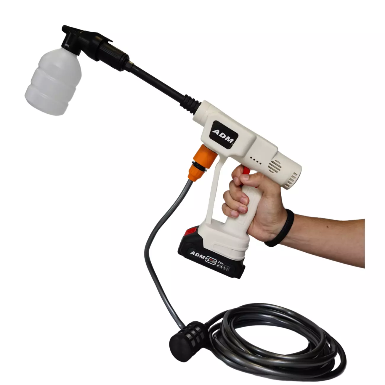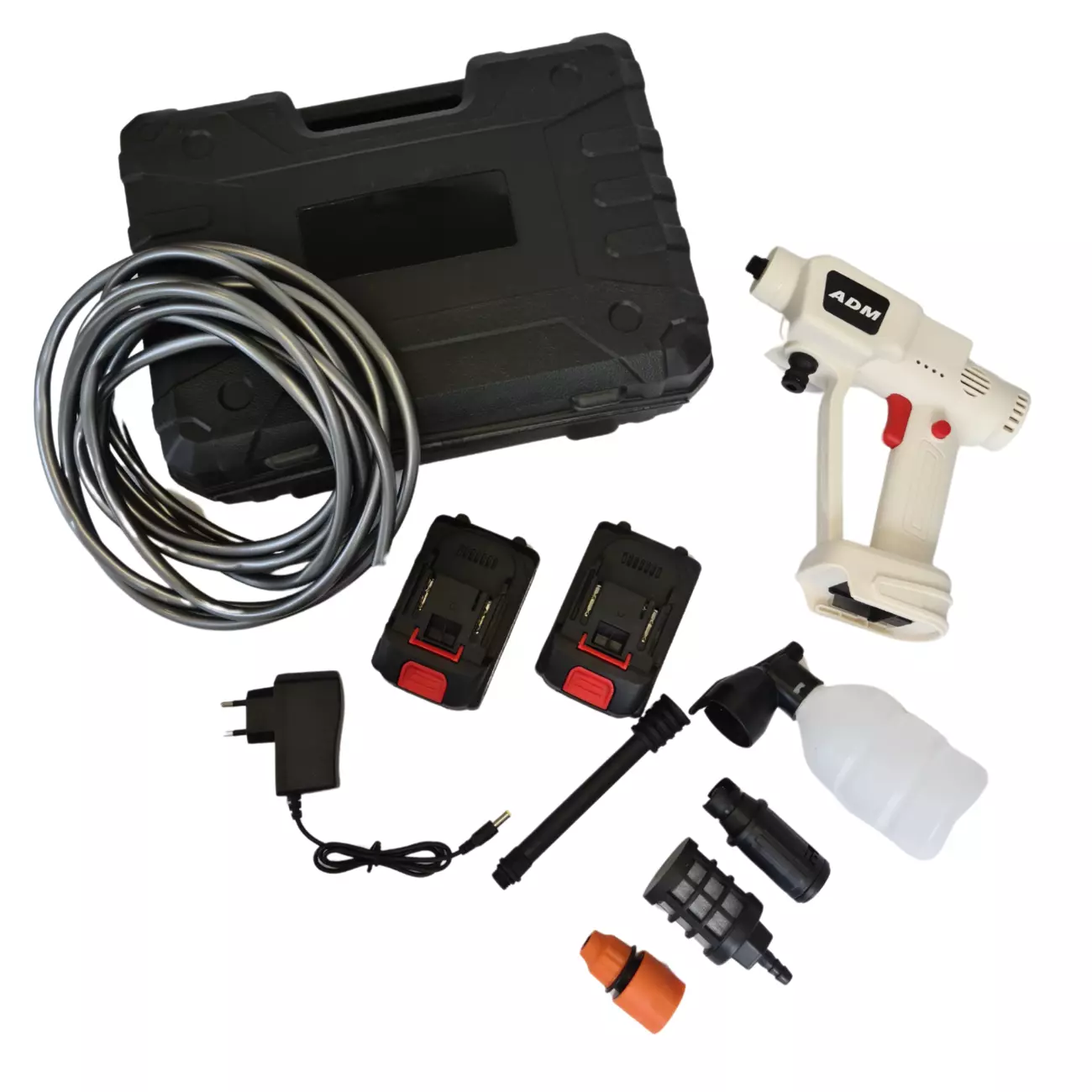 Бездротова мийка потужністю літій-іонна ADM має інтегровану конструкцію з високим тиском та гнучким використанням. Вона постачається з 2 літієвими батареями та не обмежена джерелом живлення, що забезпечує користувачам самостійне миття автомобіля або будь-який інший процес очищення. Продукт можна брати з собою в автомобіль та використовувати будь-коли та будь-де, заощаджуючи ваш дорогоцінний час.