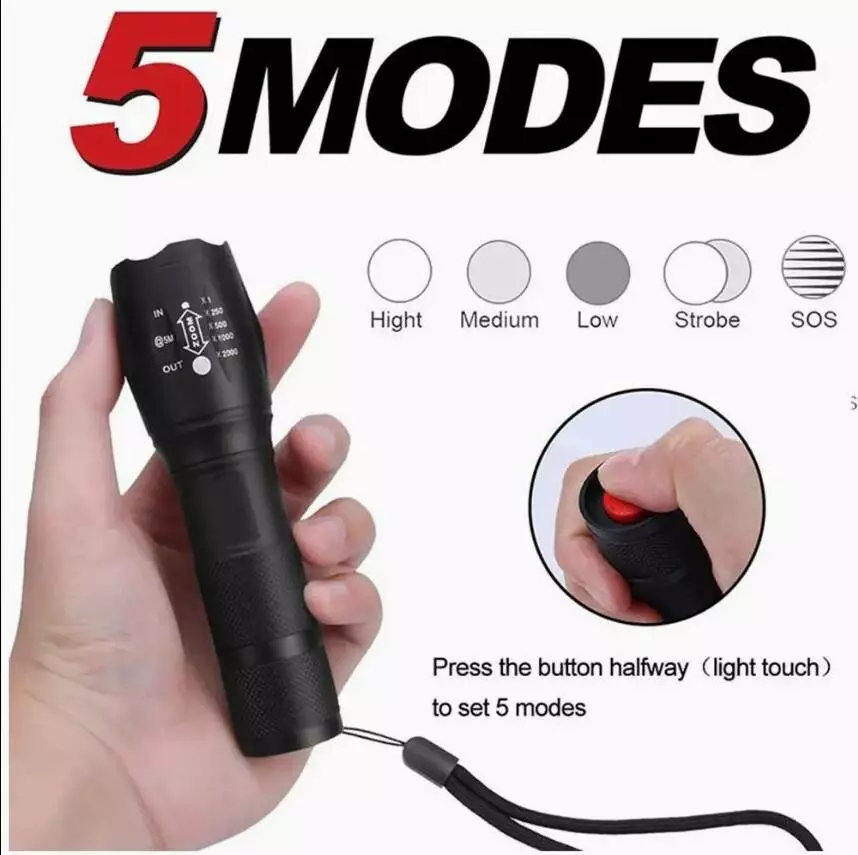 П'ять режимів освітлення: 100%, 60%, 40%, стробоскоп, SOS