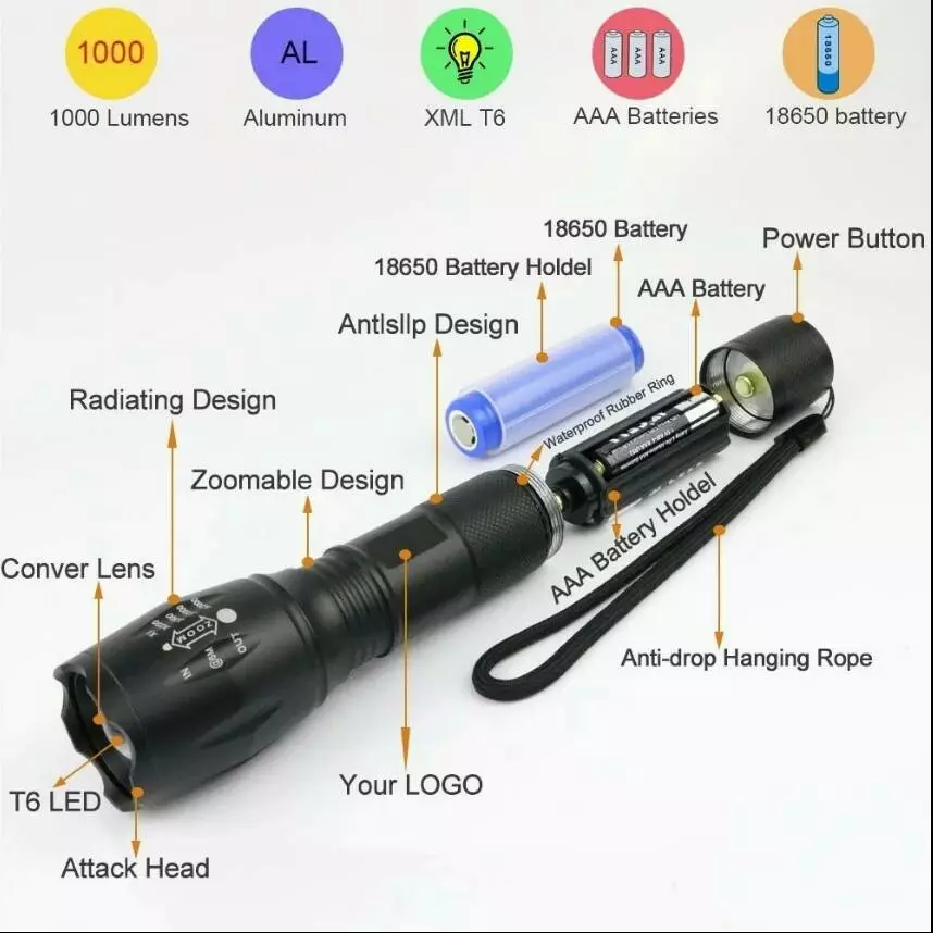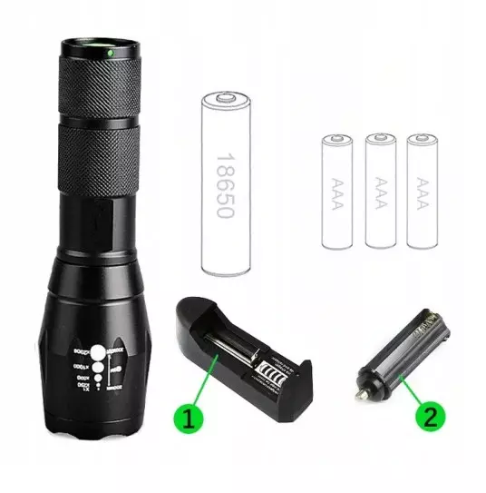 Надпотужний тактичний ліхтарик, два типи живлення