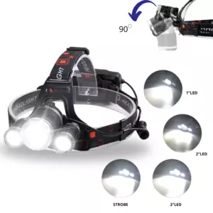 Потужний світлодіодний налобний ліхтарек 3 X LED T6 CREE