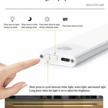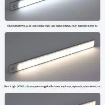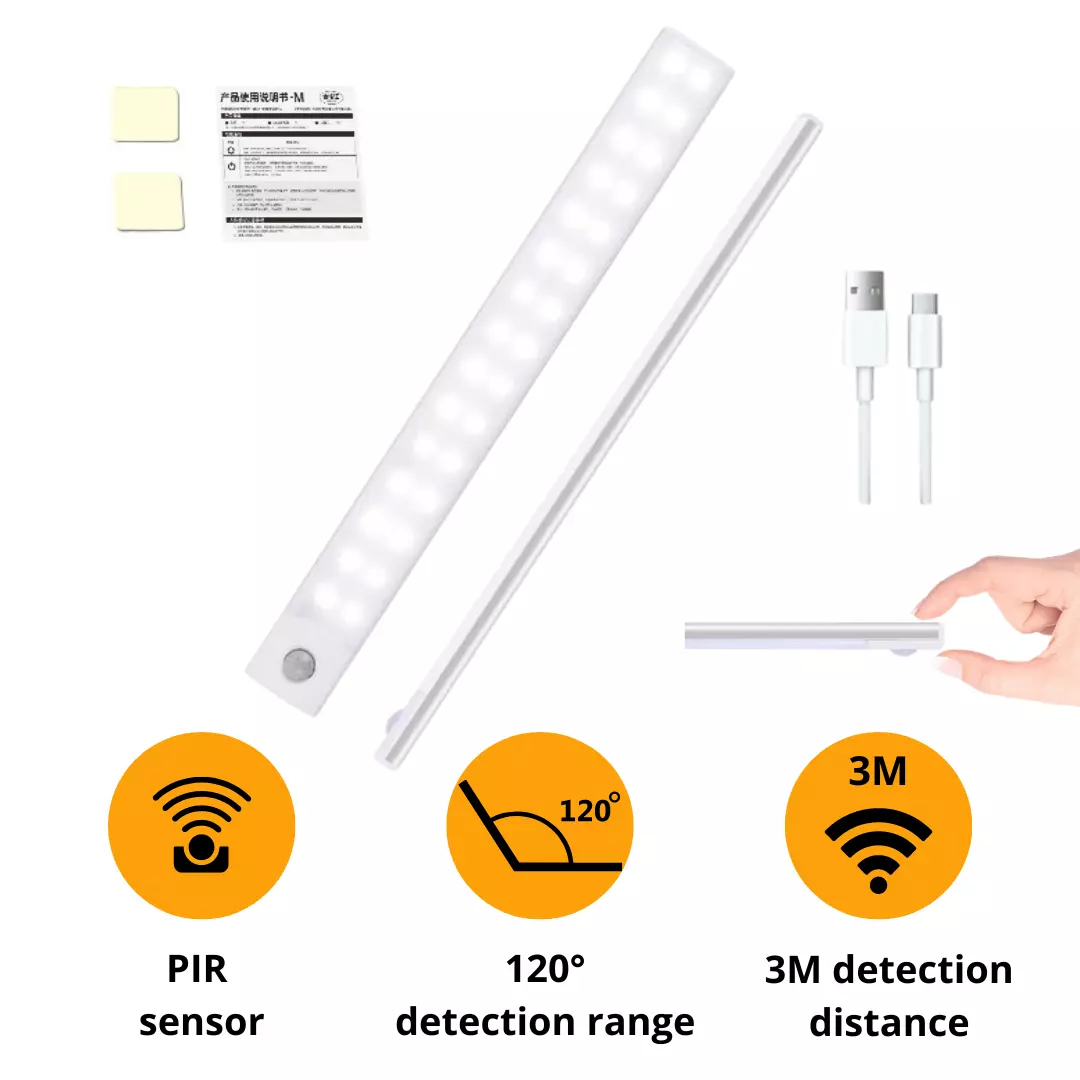 Оновіть освітлення свого дому за допомогою інтелектуальної світлодіодної лампи з датчиком руху, розробленої для енергоефективності, зручності та легкого встановлення. Завдяки освітленню, що активується рухом, та тонкому сучасному дизайну ця лампа, що перезаряджається через USB, ідеально підходить для шаф, кухонь, коридорів тощо.